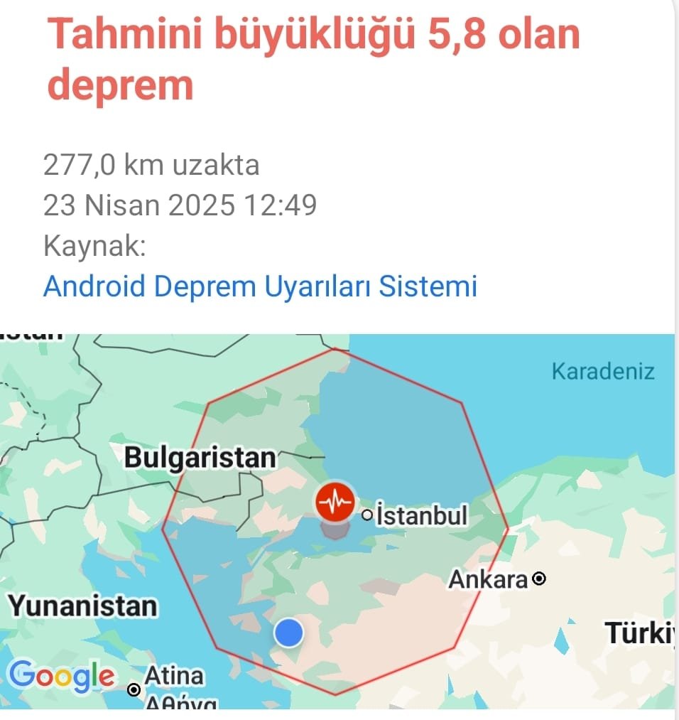 İstanbul’un Silivri açıklarında bugün saat 12:49’da 6.2 büyüklüğünde bir deprem meydana geldi. AFAD’ın verilerine göre, Marmara Denizi’nde, yerin 6.92 kilometre derinliğinde gerçekleşen sarsıntı, İstanbul başta olmak üzere çevre illerde güçlü bir şekilde hissedildi. Depremin merkez üssü, Silivri’ye yaklaşık 23.16 kilometre mesafede yer aldı.